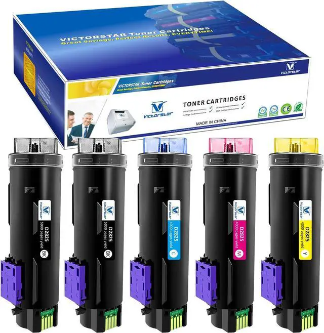 VICTORSTAR @ 5 Packs Compatible Toner Cartridge S2825 H625 H825 (2BK + C + Y + M) The Highest Yield 5000 Pages for BK & 4000 Pages for C/M/Y for Dell Laser Printers H625 cdw/H825cdw/S2825cdn (5C)