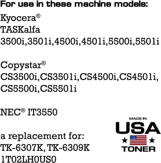MADE IN USA TONER Compatible Replacement for Kyocera TASKalfa 3500i, 3501i, 4500i, 4501i, 5500i, 5501i | TK6307K TK-6307K Copystar TK-6309K (Black, 2 Pack)