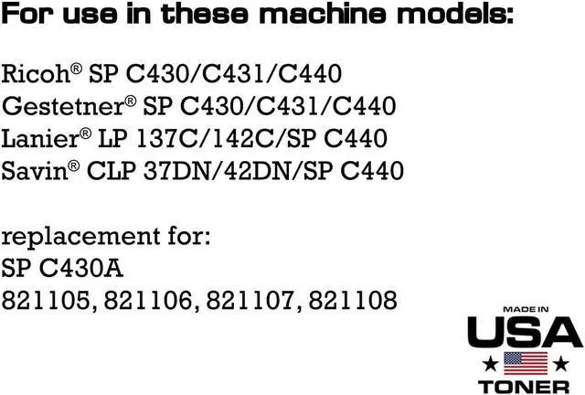 For use in Ricoh Aficio SP C430DN, SP C431DN, SP C431DN-HS, SP C440DN, Savin CLP37DN, CLP42DN, Lanier LP137CN, LP142CN