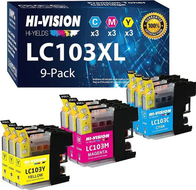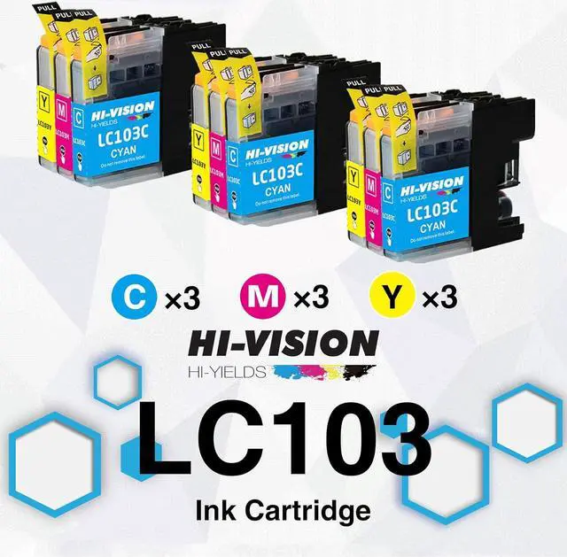 HI-VISION HI-YIELDS Compatible LC-103XL Ink Cartridges Replacement for Brother LC103XL 103XL Work with MFC-J4310DW J4410DW J4510DW J4610DW J4710DW, (3X Cyan, 3X Magenta, 3X Yellow, Total 9-Pack)