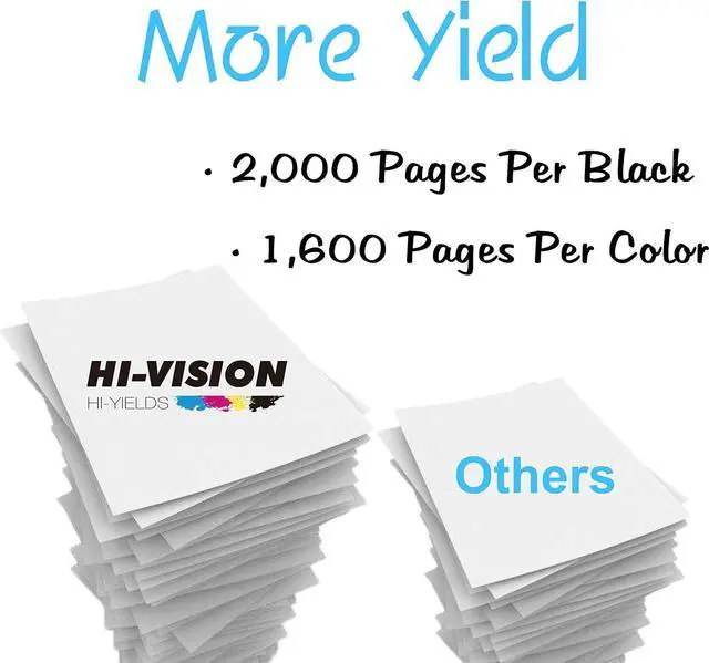 • High Page Yield: Black is 2,000 pages per cartridge and color is 1,600 pages per cartridge at 5% coverage