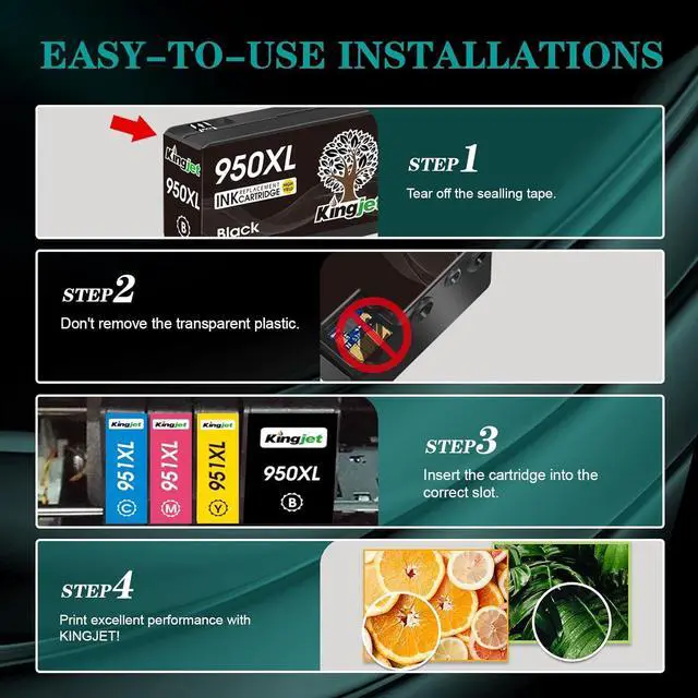 Kingjet focus on ink cartridge R&D and manufacturing over 15 years, our compatible for HP 950XL 951XL combo has lastest smart chip, fit all new firmware version perfectly, easy to install; Print sharp black text and bright-coloured output, excellent performance; Multi-layer Packaging, no leaking.