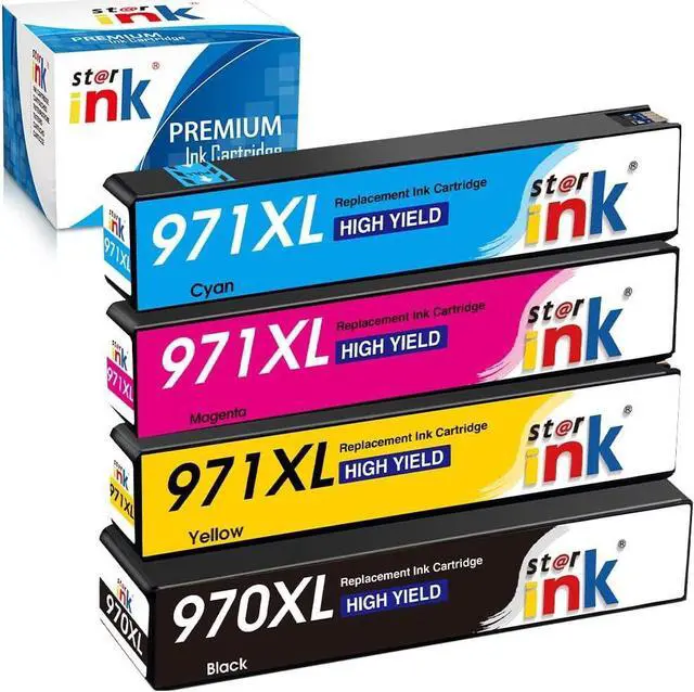 Previous pageNext page Starink Compatible 970XL 971XL ink cartridges for HP Printer, 4 Packs(Black Cyan Magenta Yellow) Package & Page Yield Compatible Printer
