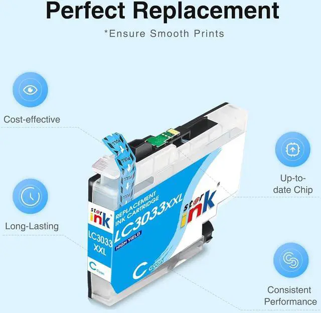 Starink Comaptible High Yield LC3033 ink cartridges replacement for Brother LC3035 XXL, 5 Packs, (2 BK/C/M/Y); Page Yield: 3000 pages per Black cartridge, 1500 pages per CMY cartridge Compatible with Printer: MFC-J995DW, MFC-J995DWXL MFC-J815DW, MFC-J805DW, MFC-J805DWXL Printer