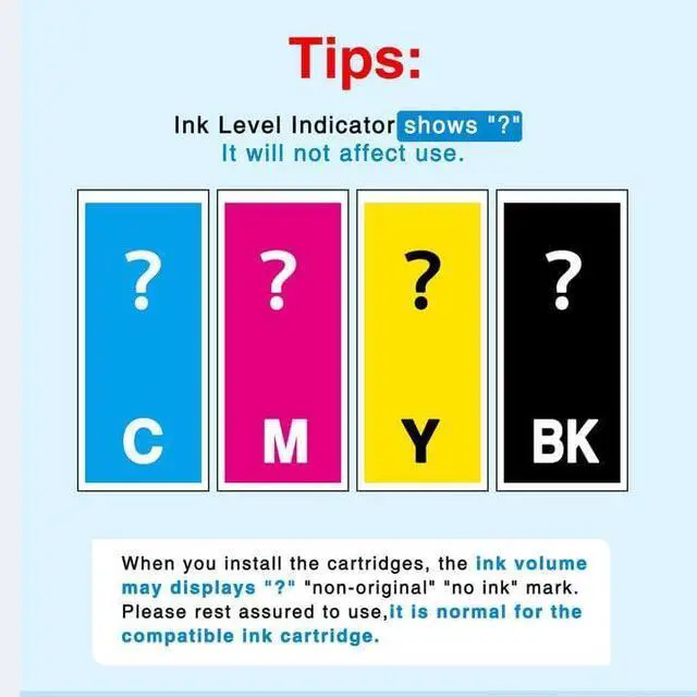 Show 4 "?" explanation: To avoid OEM patent infringement, ink volume will be displayed on computer that connected with the printer