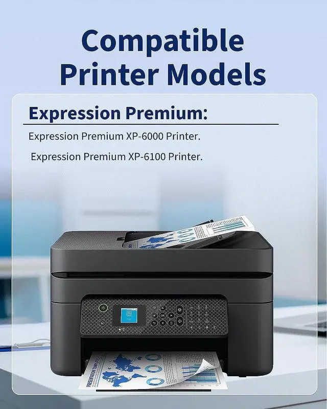 Next page Printer CompatibilityCompatible with Epson XP-6000 XP-6100 printer, Expression Premium XP-6000, XP-6100, XP6000, XP6100 printer.Higher Page Yield650 pages per 302XL Black cartridge, 650 pages per 302XL Color cartridgeColoreBlack, Photo Black, Cyan, Magenta, YellowCompatible DevicesEpson 302 / 302XL / 302 XL / T302 / T302XL The latest version of the 2023 chip accurately recognizes your printer and intelligently monitors ink consumption and remaining ink.