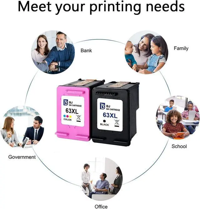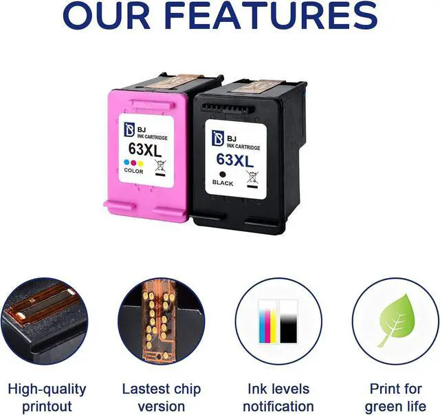 BJ helps you to reduce your printing costs. BJ 63XL compatible ink cartridges offer you up to 480 pages printed by each black cartridge and the BJ 63XL cartridge is able to deliver 330 pages printed in color.