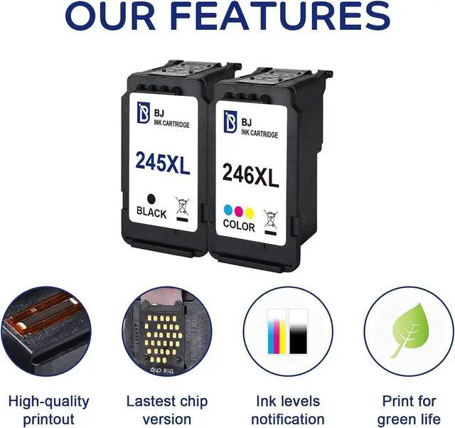 The product can print more pages as compared to standard cartridges. BJ 245XL compatible ink cartridges offer you up to 400 pages printed by each black cartridge and the 246XL cartridge is able to deliver 300 pages printed in color.