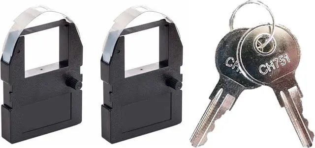 Ribbons and keys bundle. Includes two compatible ink cartridges and two keys for the following Pyramid time clock models: 3000, 3000HD, 3500, 3500HD, 3700, 3700HD, 4000, 4000HD. Black ink, long life, premium quality better than OEM, direct replacement for Pyramid 4000R and 41479K. Not compatible with Allied Time AT-3500 model.