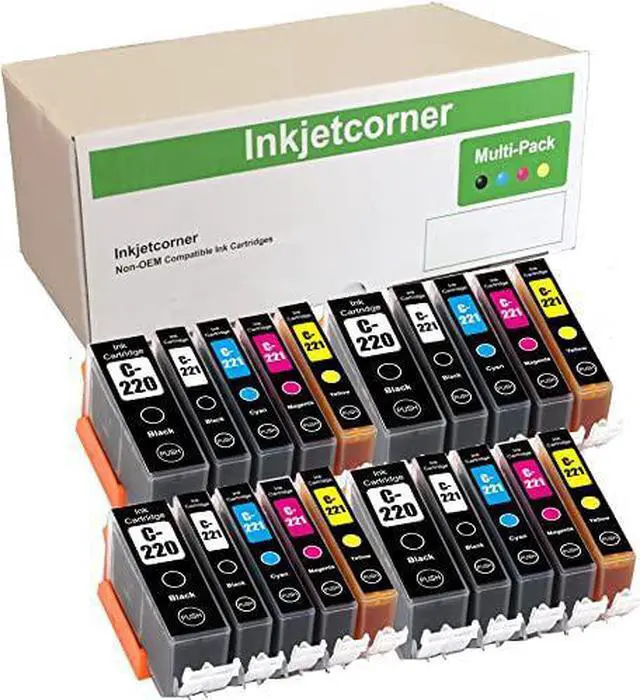 Inkjetcorner Compatible Ink Cartridges Replacement for PGI-220 CLI-221 for use with MP560 MP640 MX860 MX870 iP3600 iP4600 iP4700 (4 Black 4 Photo Black 4 Cyan 4 Magenta 4 Yellow, 20-Pack)