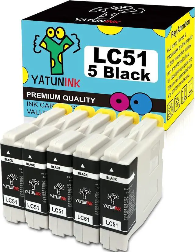 • Package Includes: 5 Pack for Brother LC51 Black Ink Cartridges