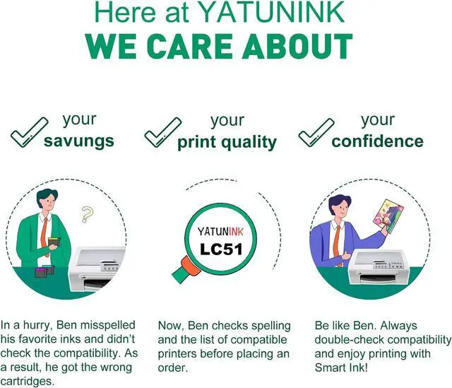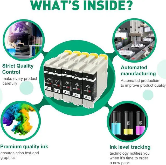 • YATUNINK Brother LC51 Ink Cartridges Type: High yield high capacity high utilization rate compatible ink cartridge; Work as Original products; Manufactured by YATUNINK (ISO 9001 certified facility)