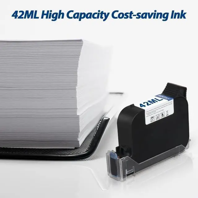 Cost-effective with Extensive Output: Featured with a 1/2 inch (12.7mm) print head, this ink cartridge contains 42mL high capacity to print up to 2,000,000 characters at the print height 2.5mm with the grey level set to 7th.