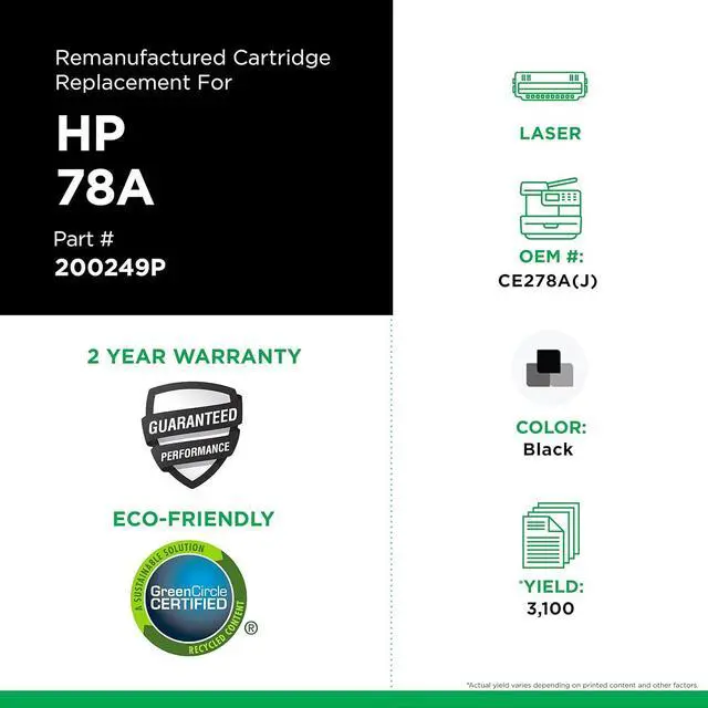 • Clover remanufactured printer cartridges are designed to meet or exceed HP brand print quality, page yield, and reliability