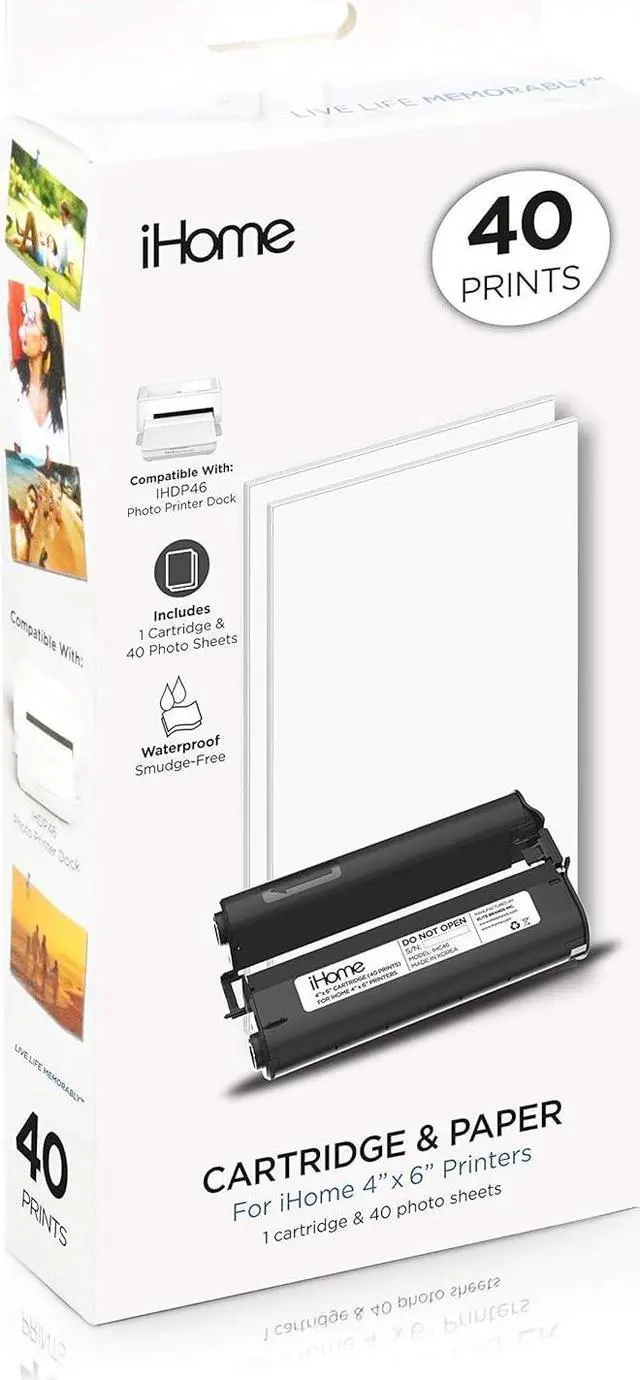 iHome® 4x6 Inch Ink+Paper Cartridge (40 Prints Total), Model Number: IHC46-40