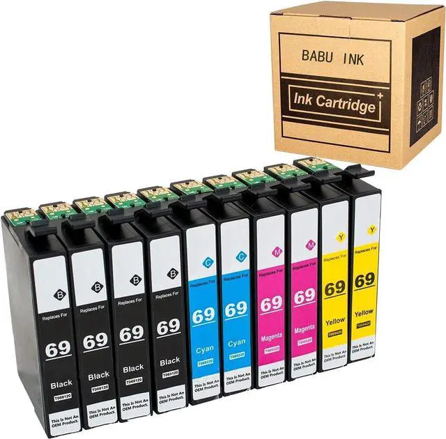 • Package Contents: 10 Pack Remanufactured Ink Cartridges replacement for 69 T069 INK CARTRIDGE (4 Black, 2 Cyan, 2 Magenta, 2 Yellow)