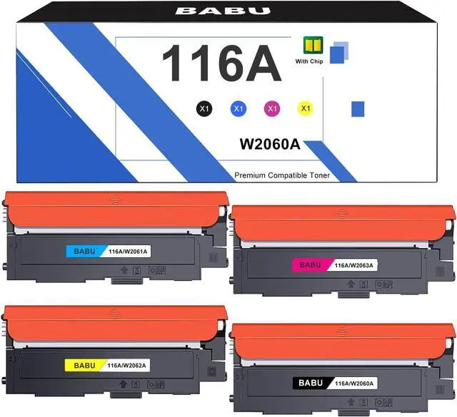 BABU Compatible Toner Cartridge Replacement for HP 116A W2060A Set Work for HP Color Laser MFP 179fnw MFP 178nw 150a 150nw (Black Cyan Yellow Magenta, 4-Pack)