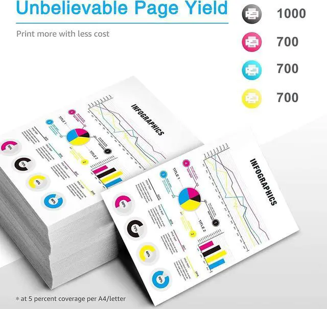 Cartridge yield (approx.): 1000 pages per black toner cartridge & 700 pages per color toner cartridge @ 5% coverage (A4 paper)