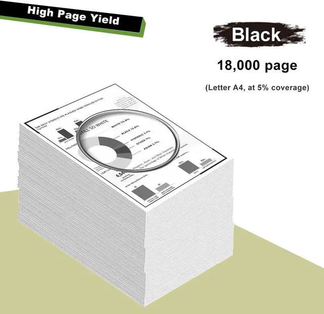 ~18000 pages per black toner @ 5% coverage ( A4 paper )