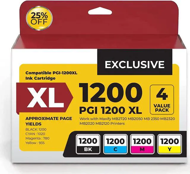 4 Pack Canon Maxify PGI-1200XL Compatible Replacement Ink Cartridge This Compatible Replacement Ink won't leak or smear across the pages. InkjetsClub saves customer who order this product 79% off the retail price.
