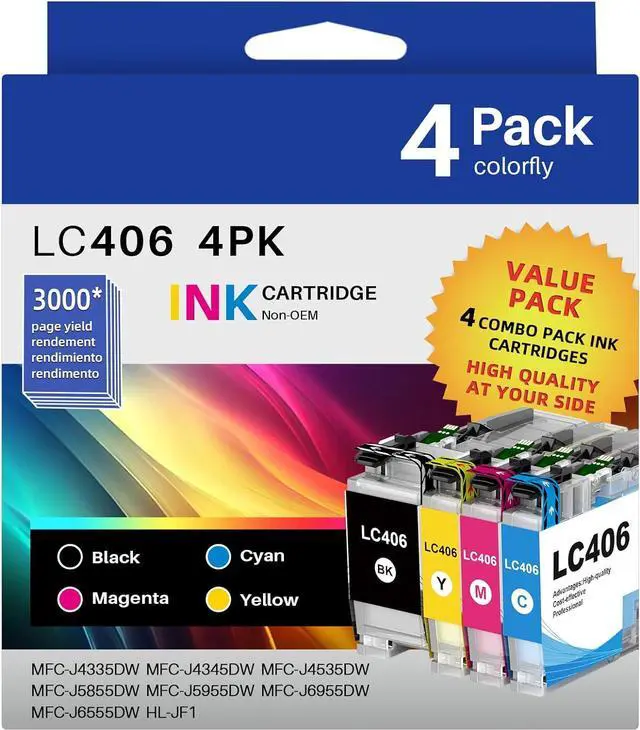 This ItemLC406 Ink Cartridges Replacement for Brother LC406 LC 406 Ink Cartridges Compatible for Brother MFC-J4335DW MFC-J4345DW MFC-J4535DW MFC-J5855DW MFC-J6555DW MFC-J6955DW MFC-J5955DW Printer 4 Combo PackRecommendationsLC406 Ink Cartridges Compatible for Brother Printer for Brother LC406 LC406XL Ink Cartridges for Brother MFC-J4335DW MFC-J4345DW MFC-J4535DW MFC-J5855DW MFC-J5955DW MFC-J6555DW, 4 PackdummyLC406 Ink Cartridge (with New Chip), Compatible for Brother LC406 LC406BK for MFC-J4335DW MFC-J5855DW MFC-J4535DW MFC-J6955DW MFC-J5955DW MFC-J6555DW MFC-J4345DW, Black Cyan Magenta YellowdummyLC406 Ink Cartridges for Brother Printer for Brother LC406 Ink Cartridge Replacement with Brother MFC-J4335DW XL, MFC-J4345DW XL, MFC-J4535DW (4 Packs) dummyLC406XL Ink Cartridges for Brother Printer for Brother LC406XL LC406 LC 406XL for Brother LC406 Ink Cartridges Compatible with Brother MFC-J4335DW, MFC-J5855DW, MFC-J4535DW, MFC-J6555DW Printer (4 Pack) dummyStamsky LC406 Ink Cartridges for Brother Printer for Brother LC406 Ink Cartridges LC406XL LC 406 XL Compatible with Brother MFC-J4535DW MFC-J4335DW MFC-J5855DW MFC-J6555DW MFC-J6955DW Printer, 4 Pack