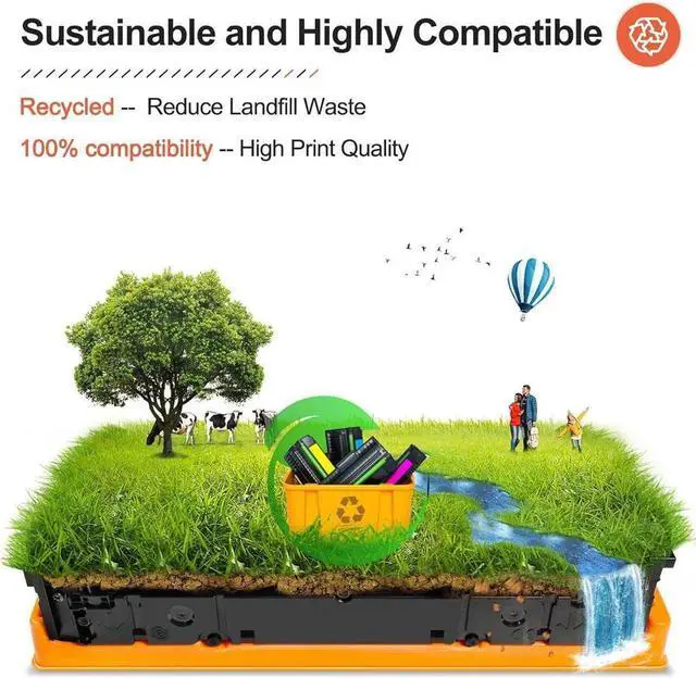 Each v4ink remanufactured replacement toner cartridge isfilled with high quality compatible toner powder and rebuilt by usingpremium recycled components