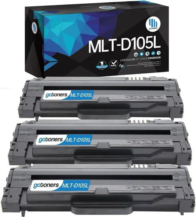 • What's included: Compatible D105L Toner Cartridge Replacement for Samsung MLT-D105L (3 Black, Total 3-pack). Easy to install and use, rival the original in clear and stable printing. Non-OEM.