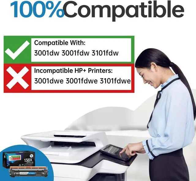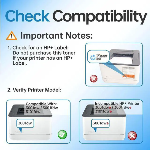 • Printer Compatibility: HP LaserJet Pro 3001dw 3001fdw 3101fdw. Do Not Compatible with HP+ Printer such as 3001dwe and 3101fdwe.