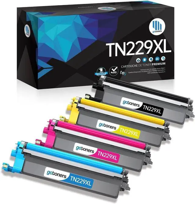 TN229XL Package Contents: 4 x Pack TN-229-XL toner cartridges replacement for Brother TN-229XL (Black, Cyan, Magenta, Yellow, high capacity)