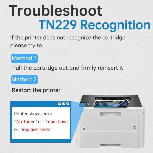 Buy with Confidence: As our products TN229 colour toners are made in an ISO 9001 and ISO 14001 certified facility, we are confident that they will be completely compatible with your printer, and will print sharp text and vivid colors.