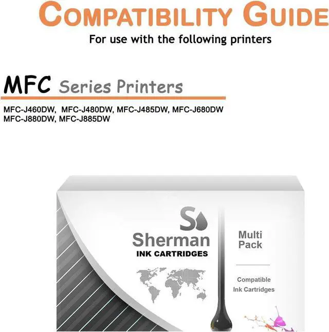 INCLUDES: 4 Black LC203BK / LC201BK, 2 Cyan LC203C / LC201C, 2 Magenta LC203M / LC201M, 2 Yellow LC203Y / LC201Y inkjet cartridges.Compatible with part numbers Brother LC201, LC203
