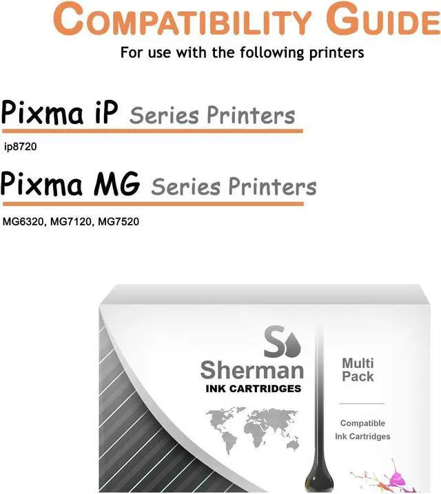Sherman Replacement Ink Cartridge replacement for inkjet printer models PIXMA iP8720, PIXMA MG6320, PIXMA MG7120, PIXMA MG7520