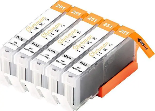 INCLUDES: 5 Gray 6452B001 / CLI-251Y / CLI-251XL / 6517B001 inkjet cartridges.Compatible with part numbers Canon PGI-250XL, CLI-251XL, Canon 251, Canon 250