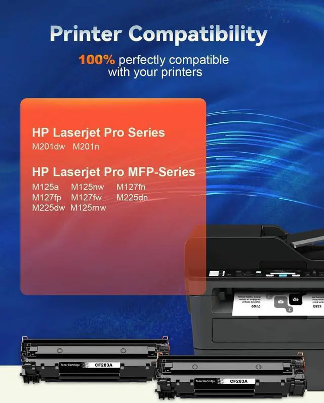 4.6 out of 5 stars2-Pack 83A Toner Cartridge, M127 Toner, High Yield Replacement for HP 83A CF283A Work with HP Laserjet Pro MFP M125nw M127fw M127fn M201dw M225dw M125a M201n Laser Printer Toner (2 Black 83A)