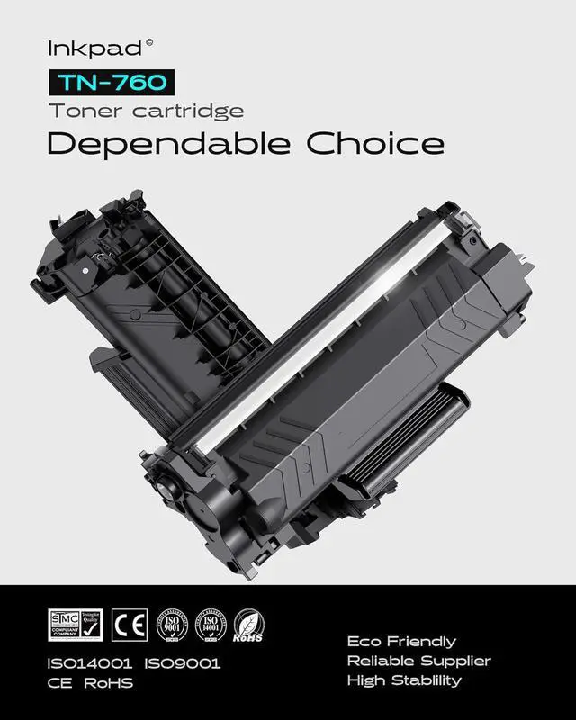 High quality and durable iNKPAD toner cartridge has obtained ISO-14001/ISO-9001 and MSDS certification. Each Timink TN760 TN730 toner cartridge is strictly inspected before shipment to ensure high quality such as stability and durability.