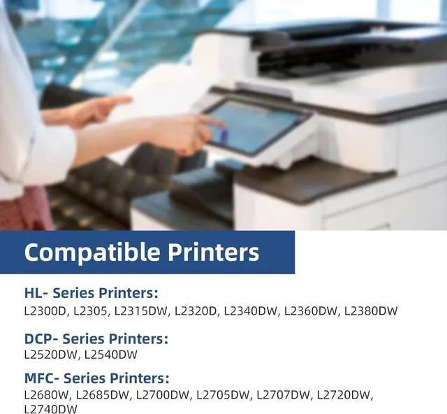• Compatibility Printer Models: HL-L2320D, DCP-L2520DW, DCP-L2540DW, HL-L2300D, HL-L2305W, HL-L2315DW, HL-L2340DW, HL-L2360DW, HL-L2380DW, MFC-L2680W, MFC-L2685DW, MFC-L2700DW, MFC-L2705DW, MFC-L2707DW, MFC-L2720DW, MFC-L2740DW printers