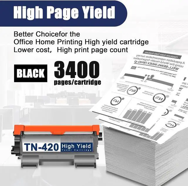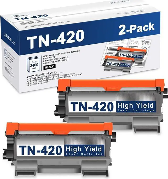 2 Pack Black TN420 TN-420 Toner Cartridge.