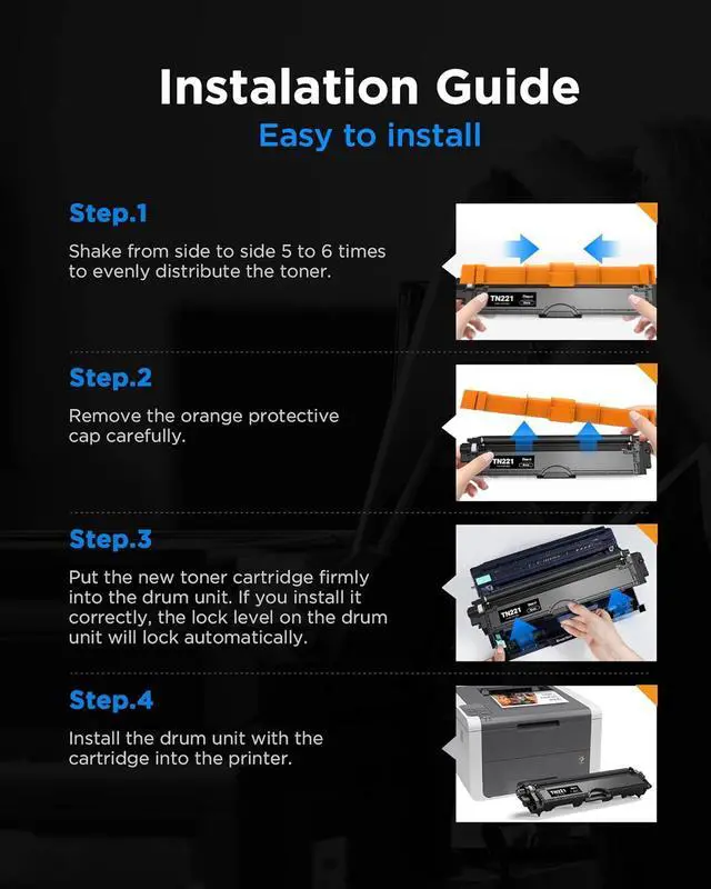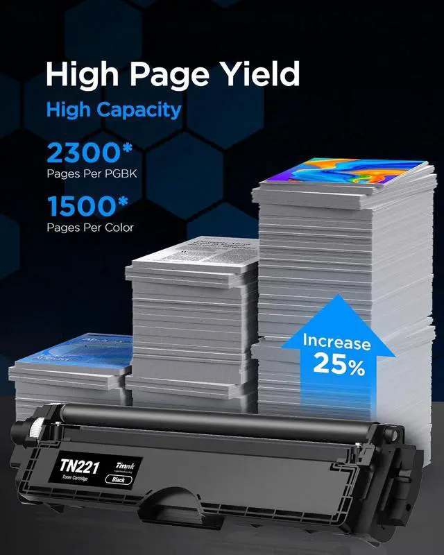 High Performance: Refined toner powder provides high-quality images and text. Our TN221 TN225 High Yield Toner Cartridge creates rich blacks and is engineered to work in seamless unison with your Brother laser printer. No Fading, No Leakage, No Streak