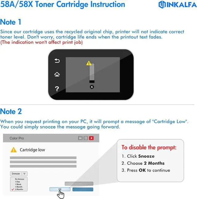 Superior quality: High-efficiency 58X with chips toner to get the clear text printing. These 58X toner cartridges are alread installed with orginal chips, No need to transfer orginal 58A or 58X toner chip to them