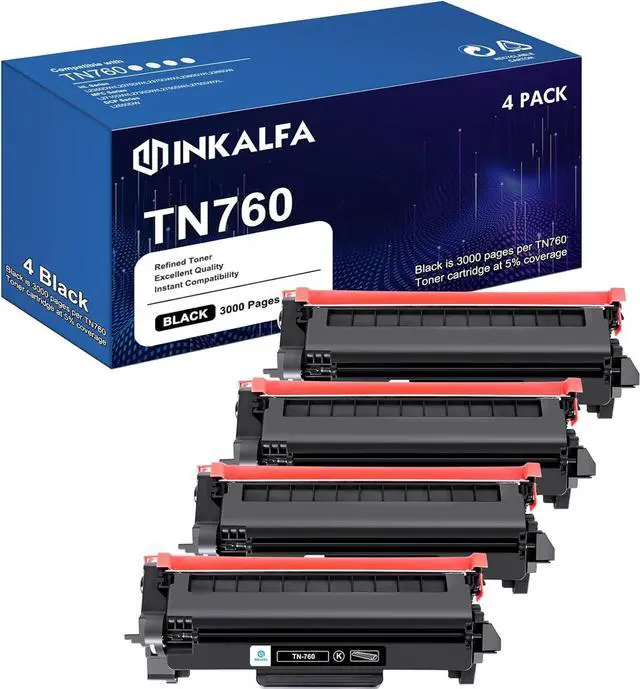 What's in the box: Inkalfa compatible toner cartridges replacement for Brother TN760 TN-760 toner cartridge black high yield and also compatible for Brother TN-730 TN730 toner