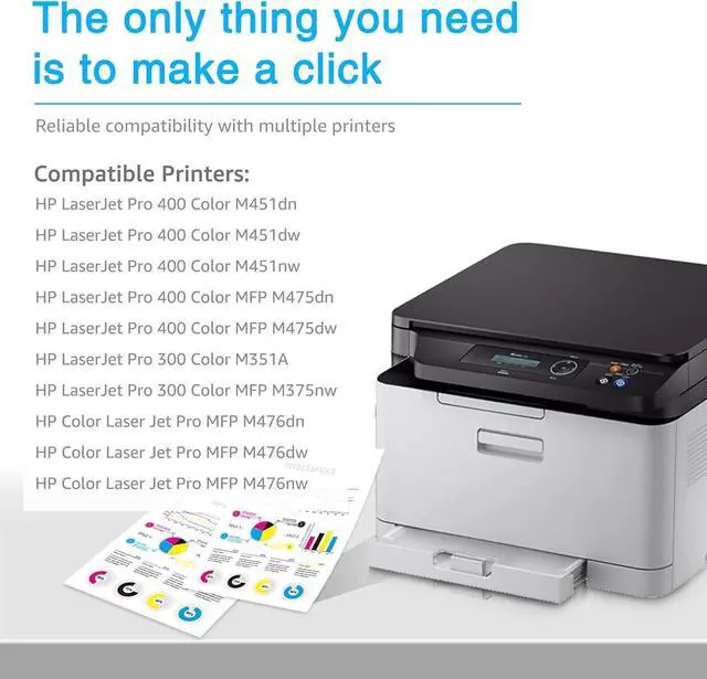 • Compatible Printers: Compatible for HP Laserjet Pro 400 Color M451dn M451dw M451nw M451 MFP M475dn M475dw M475, Compatible for HP Laserjet Pro 300 Color M351A M351 MFP M375nw M375 Toner Printers