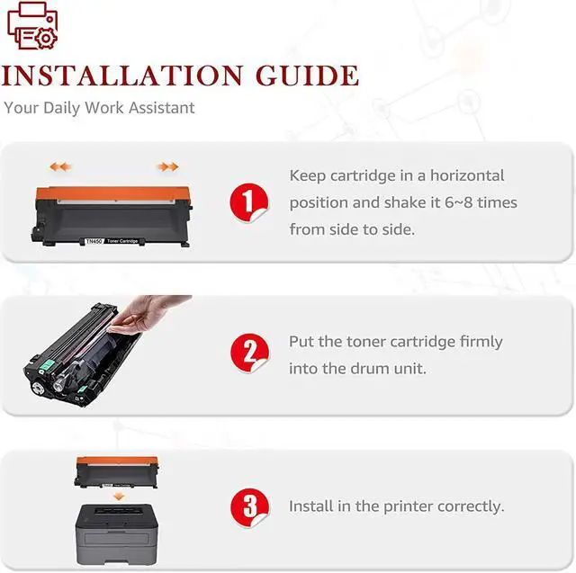 Print Performance: Compatible TN450 TN420 toner cartridges, photo quality equivalent printouts, lasting for a long time with crisp and clear printout