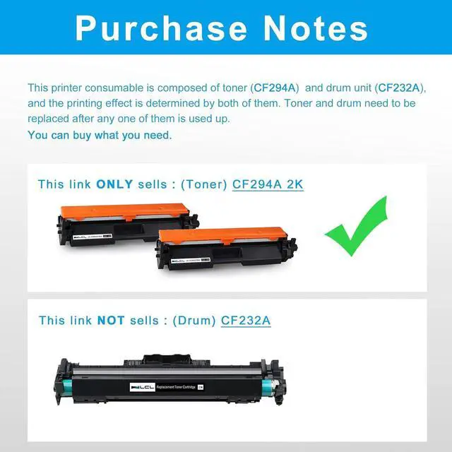 • Reliable QualityLCL CF294A Black toner cartridge uses high quality toner, toner particle size distribution, good mobility, high transfer rate, resulting in a clear image and high gloss print effect; Printing efficiency is high, waste powder rate is low, so as to ensure sufficient page yield.