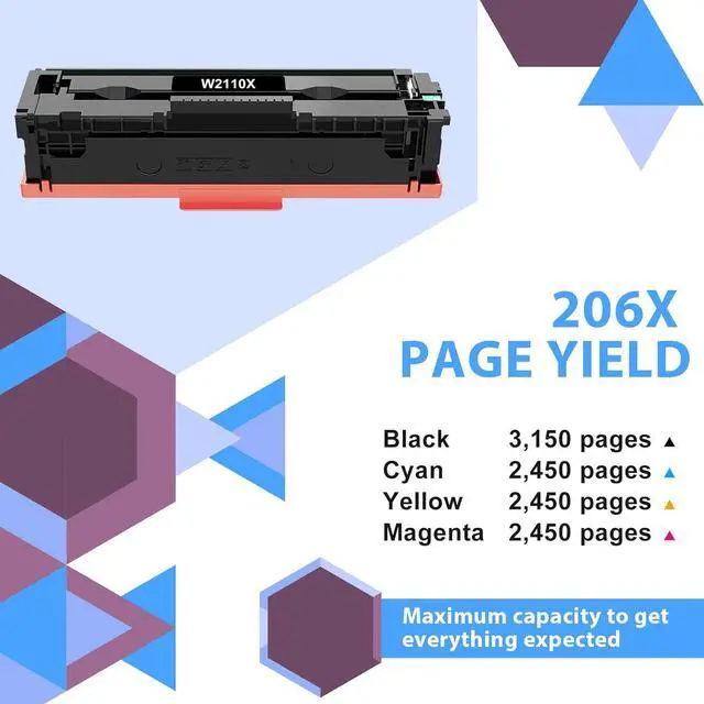 High Page Yield: Up to 3,150 Pages for 206X Black Toner Cartridges & 2,450 Pages for 206X Color Toner Cartridges (Letter A4, at 5% coverage)