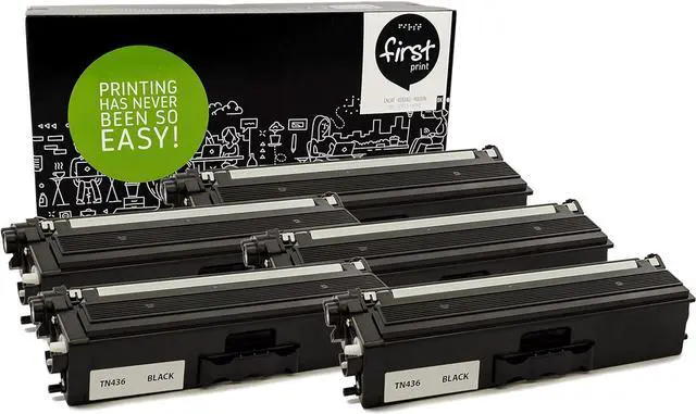 Included in the box: 5 pack Black Toner Cartridges Compatible TN-436 Print more and save: 6,500 Pages Yield @5% coverage Compatible For Brother Printer Models: HL-L8260CDW, L8360CDW, L8360CDWT, L9310CDW(T), MFC-L8900CDW, L9570CDW, L8610CDW, Print results: crisp text, bold black and sharp graphics (all may vary depending on the quality of your paper). The perfect solution for your printer while maintaining product quality at a better price. First print is your # 1 canadian toner cartridges supplier since 2005. Winner of many business awards over the years, First Print continue year after year to offer the best possible products for our customers. We offer bilingual (French and English) customer service and NO WORRIES of return of the product if you are not satisfied. Certified by ISO9001, ISO14001, CE and SMTC.