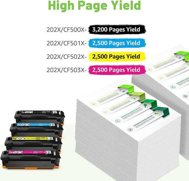 Page Yield: 1400 pages for black and 1300 pages for each color for HP 202A Toner Cartridge