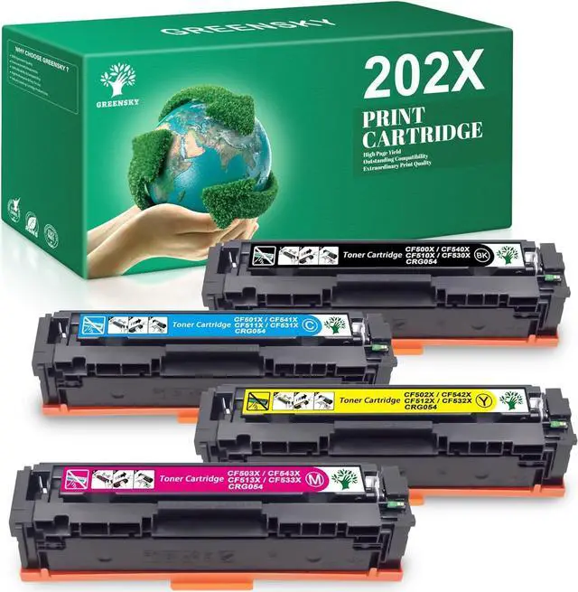 GREENSKY Compatible Toner Cartridges Replacement for HP 202X 202A CF500X CF500A for HP Color Pro MFP M281fdw M281cdw M254dw M254dn M254nw M280nw Printer (Black Cyan Magenta Yellow, 4 Pack)
