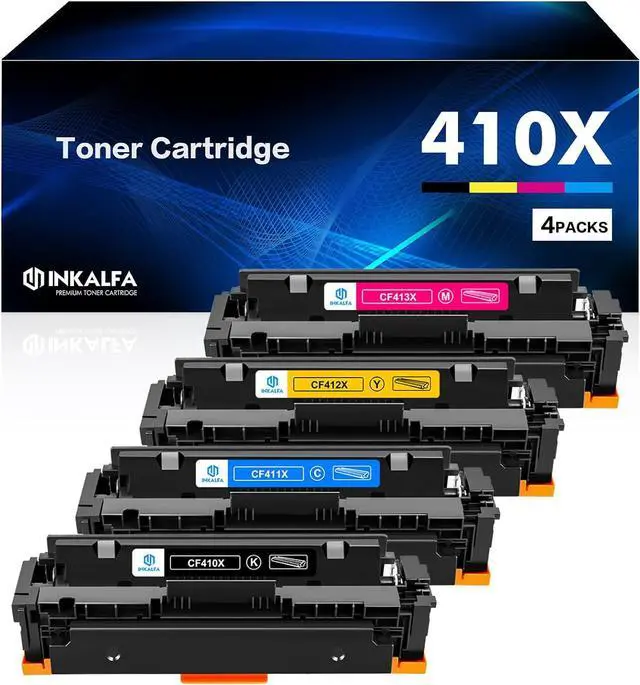 Inkalfa Compatible 4 Pack 410X Toner Cartridge Replacement for HP CF410X CF411X CF412X CF413X 410X and CF410A CF411A CF412A CF413A 410A Toner Cartridge Black Cyan Yellow Magenta