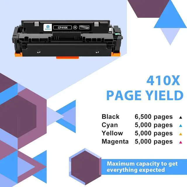 High Page Yield: Up to 6,500 Pages per 410X Black Toner Cartridges & 5,000 Pages per Color 410X C/M/Y Toner Cartridges (Letter/A4, at 5% Coverage)