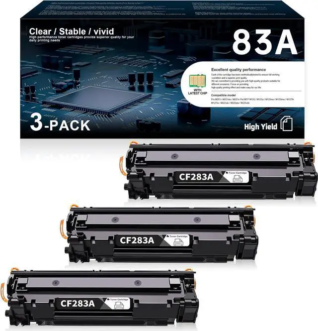 3 Pack 83A | CF283A Black Toner Cartridge.